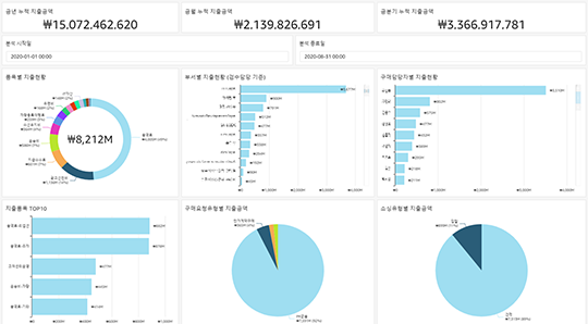엠로가 보유하고 있는 다양한 분석지표 중 구매혁신을 위해 꼭 필요한 핵심 지표를 선정하여 대시보드를 구성합니다.